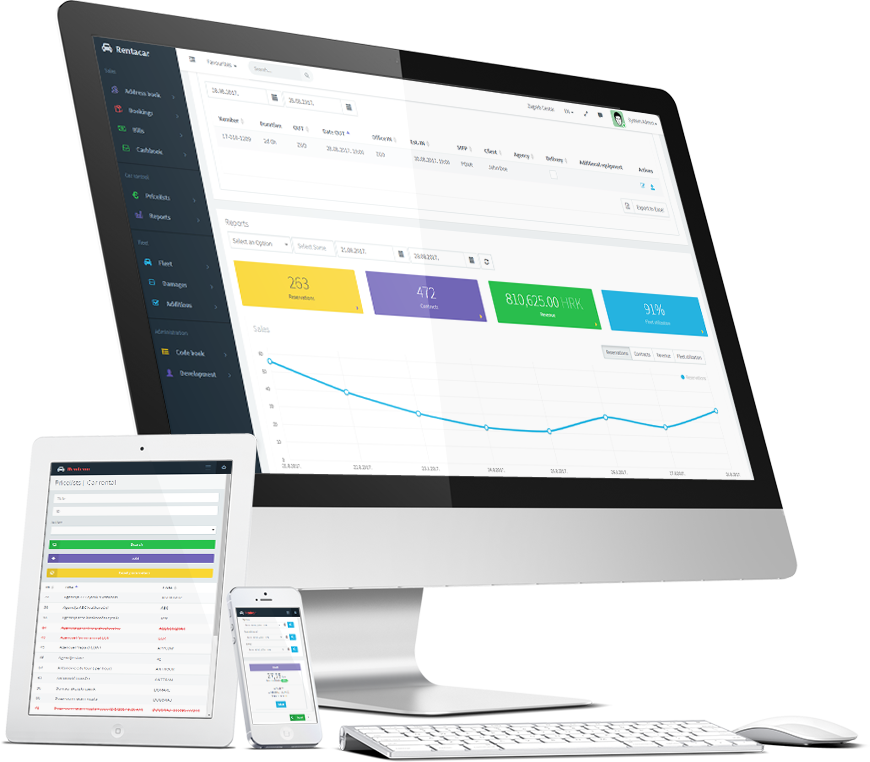 Offers. Bookings. Contracts. Long term rents. Car rental pricelists. Additions pricelists. Custom price by office. Custom delay rules. Discounts. Check-in. Fleet availability. Payments. Invoices. Cashbook journal. Automated agency invoices. Collective invocies.